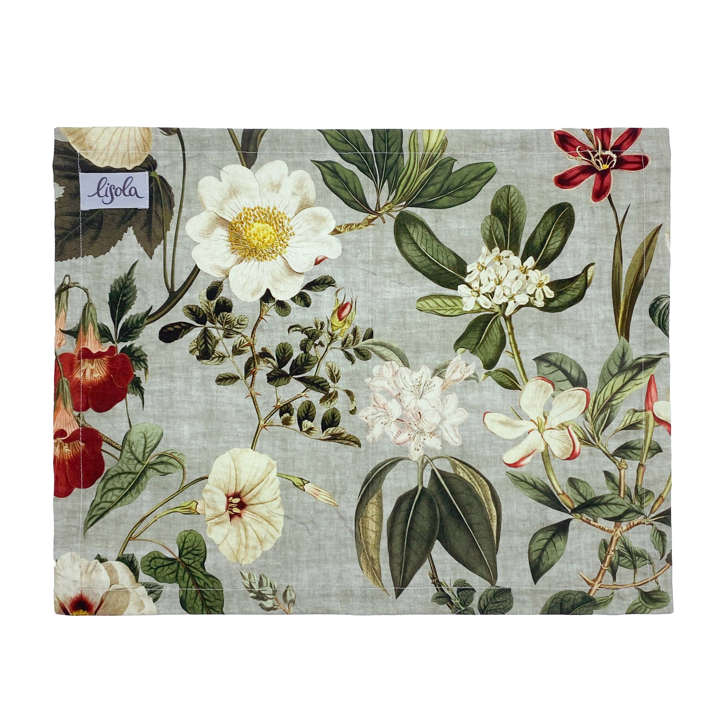 La tovaglietta all'americana Borgo Antico è realizzata in Puro Cotone arricchito da una bellissima stampa floreale sui toni del verde antico.