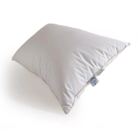 Morbido e confortevole Guanciale Aria in Piumino d'oca naturale 100%, ideale per dormire in pieno relax. Elegantemente rifinito con fettuccia perimetrale color oro, il guanciale è adatto a qualsiasi posizione e particolarmente indicato per chi dorme prono.