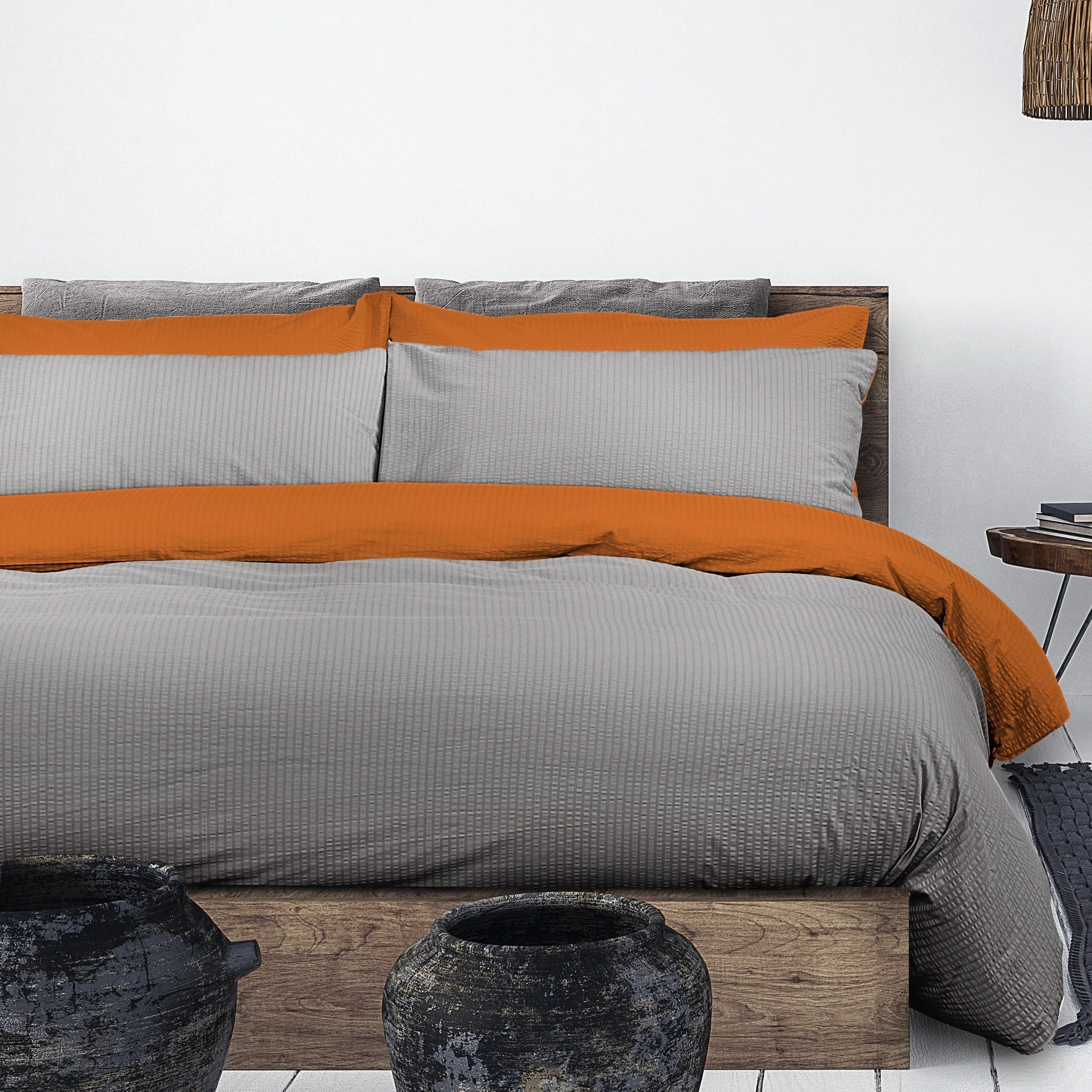 Parure Copripiumino Puro Cotone Double Face No Stiro - Seersucker Bicolor