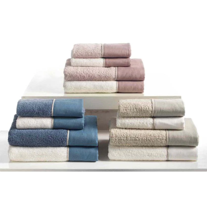 Un'estetica originale e accattivante si unisce alla praticità e comodità d'uso in questo set di 4 Asciugamani. Realizzati in Spugna di Puro Cotone 420gr/mq, sono abbelliti da un doppio bordo composto da Lino e Raso di Cotone che ne esalta ulteriormente lo stile elegante e moderno (il cordoncino in raso separa la metà in Lino da quella in Cotone).